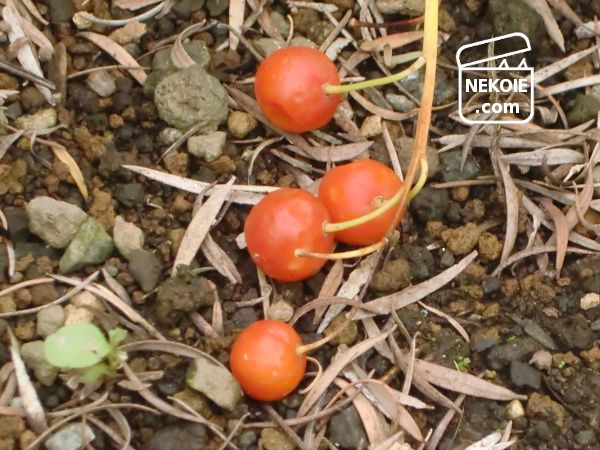 花を終えた後に実づくことがあり、それが夏と秋をすごしながら赤くなりました。