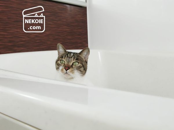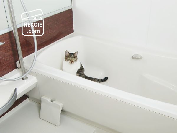 私が洗濯物を取りこんでいたら、空っぽのバスタブに飛びこんでいった弟猫。