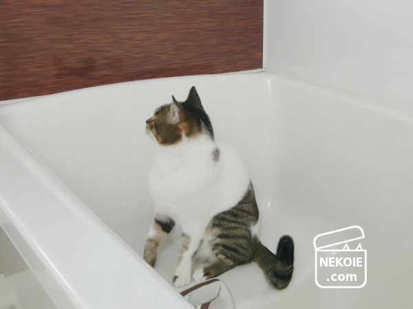 湯上り(お湯を抜いた直後)ではないのでぽかぽかしない……のが不思議なのか、せわしなくきょろきょろ。