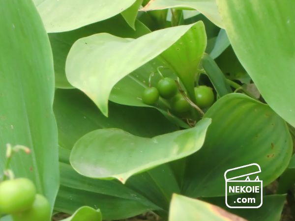 今は完全に花が終わり、青い実になっています。毒があるので気軽にさわれませんが、これから少しずつ赤くなっていくのを楽しみに待っています。