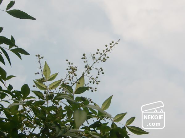 収穫物とは路線が異なるけれど、見上げてはワクワクするのがナンテンの樹。