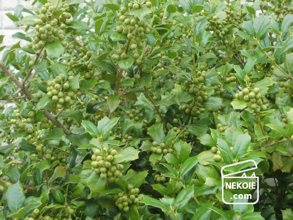 こちらは数週間前の写真で、今はもう少し実が増えた(膨らんだ)印象です。冬に赤い実が鈴なりになるのが待ち遠しいです。