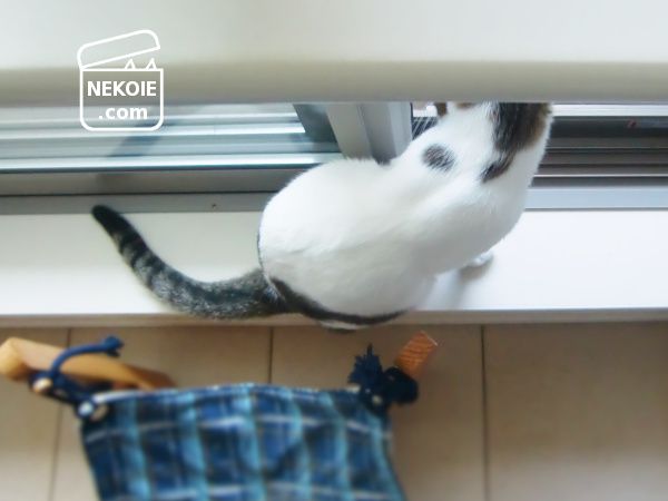 これは網戸越しに外の世界を見守る弟猫の背中。