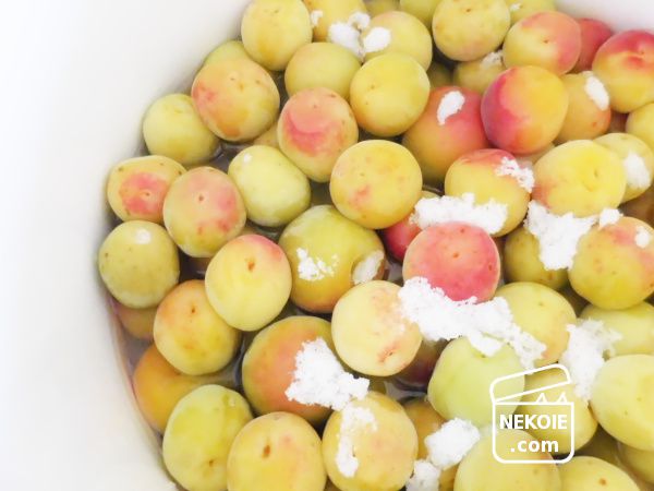 完熟梅よりも硬く、おそらく酸味も強いのではないかなと。仕込みの前にはあく抜きも必要で、水に浸しておくだけとはいえやや手間が多め。