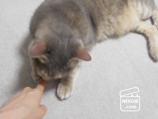 私の指を召し上がろうとしている兄猫。