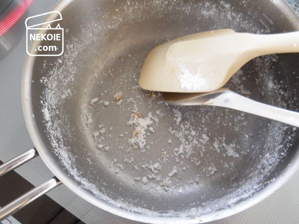 仕上げの甜菜糖をまぶすのに使ったお鍋は、残った砂糖が内側にもたっぷり。