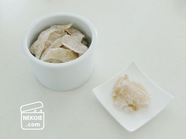 その試食が家族全員それぞれ止められず、乾燥し終えたときには生姜糖の量が半減しているほどでした。