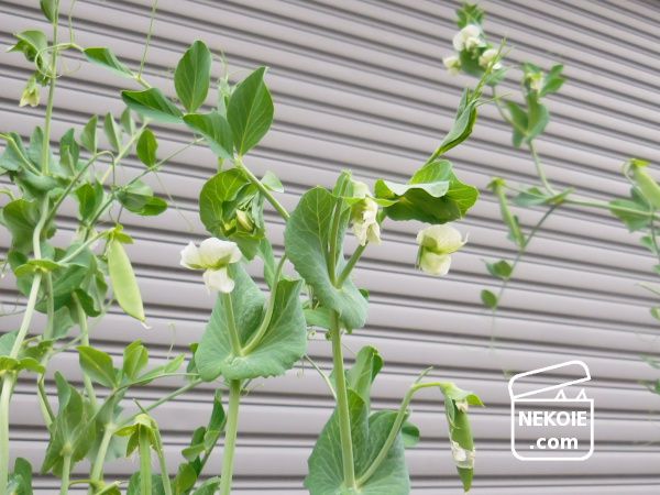 ひとまず上のほうは支柱のみで育てていますが、今後、窓の上部からネットをつって、そこにつるを這わせていくことになると思います。
