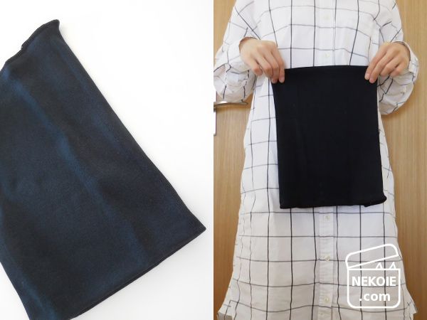 撮影時は「二つ折り」のまま写しているので、長さはこのおよそ二倍。脇下からお尻まで隠れる、私が求めていたサイズになります。