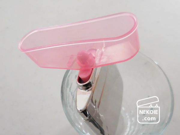 一人で燃料を注ぐときはコップに立てて作業をすると楽。写真ではガラス製の食器を使っていますが、使い捨てのプラコップ(パン部のストックになっていたもの)をもらってきたので、今はそれを使っています。