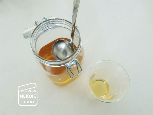 注ぎ口のない瓶で仕込んだ梅シロップにはレードルが必須。