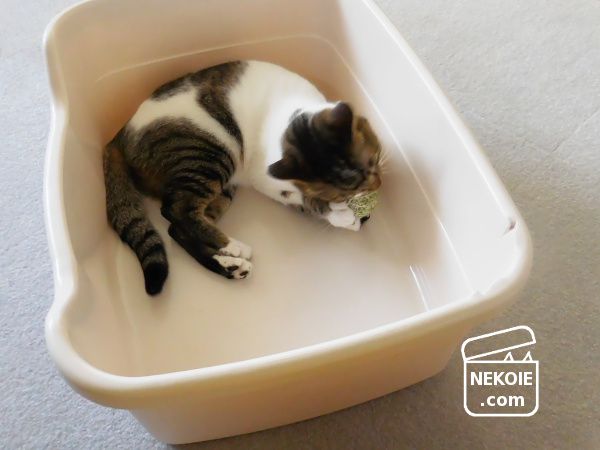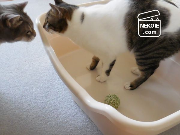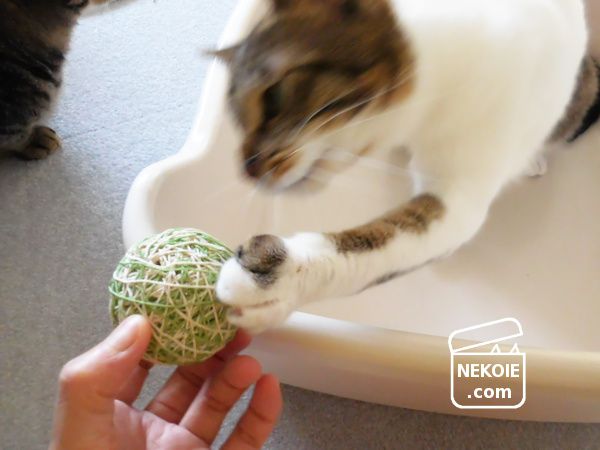 このおもちゃは弟猫が離すことなく小一時間遊び続けていたので、その間、兄は別のボールで。上の弟猫の写真とそっくりで笑ってしまいました。