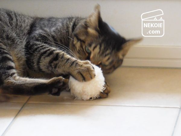 今日はしばらく放置されていたおもちゃに、またたびの香りを移し(同じポリ袋の中に一晩入れておき)、再び猫たちへ。