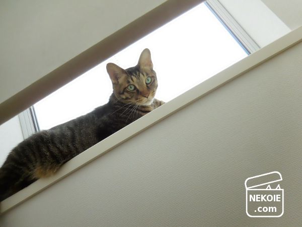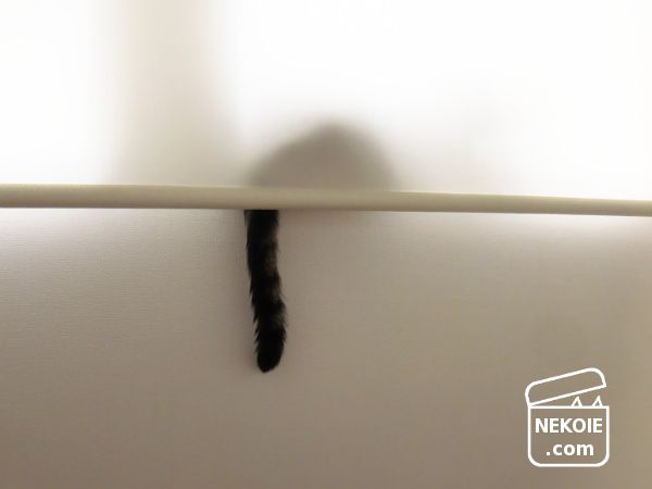暑さのせいか最近見なくなっていた、窓際から生えるしっぽ。