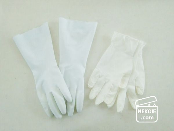 そこでその作業にも薄手のゴム手袋(ニトリルゴム手袋)を使い始めたところ、指の乾燥が一気に減りました。