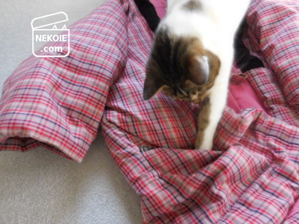 こんなふうに劣化につながる行為をやめさせるには、ポケットにおもちゃを入れなければいいし、脱いだはんてんを猫の前におかなければいいだけ。着用中に手を出してくるなら、やめてほしいと制止することもなんとかできます。
