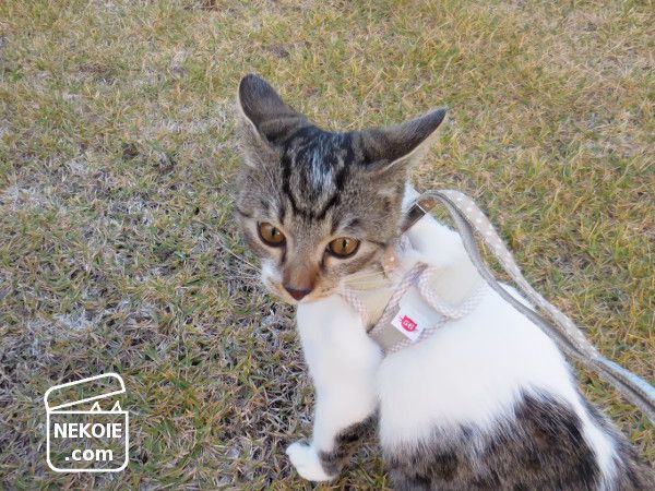 先月の話ですが、うちの猫兄弟の末弟がハーネスデビューいたしました。