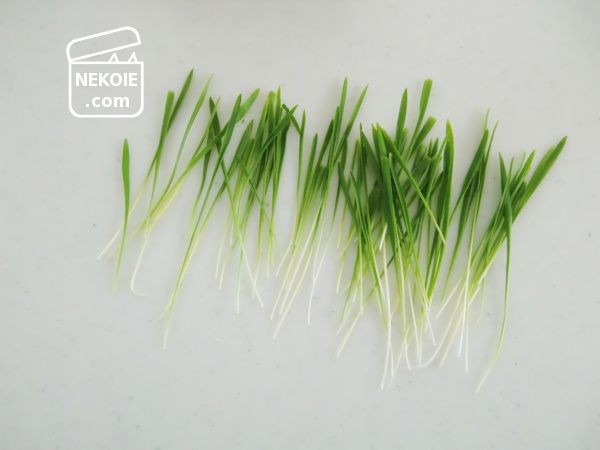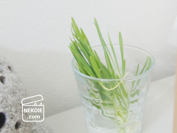 ようやく育った猫草は、すでに他の猫たちのおやつにもしています。毎回そっと引き抜いて根本にかび(黒っぽい点やモワモワ)がついていないか確認し、今日はコップに挿してお供えしました。