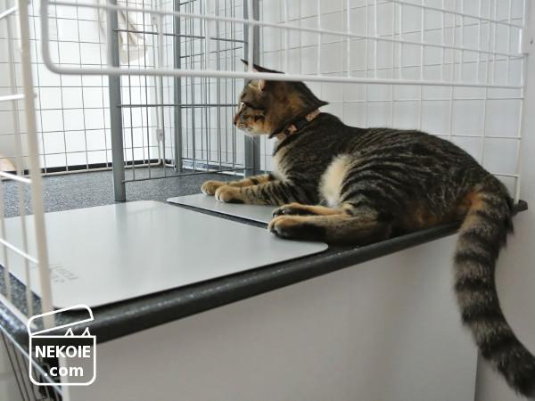 暑いときは、アルミプレートの上でノビノビ。