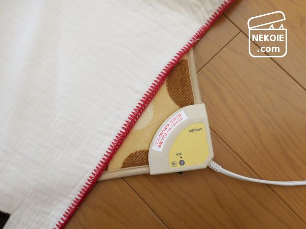 結果的に「日本製の人間用(なんとなく質がよいイメージで)」という点を優先してしまったけれど、このマットは強弱設定がないので基本の表面温度は45度。布をかけるのはそれが理由でもありました。