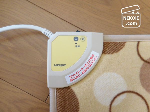 少しだけ不安だったのが、こういった電気マットは猫(犬)用とくらべて人間用の製品のほうが温度設定が高めであったり、低めに調節できないものが多いこと。