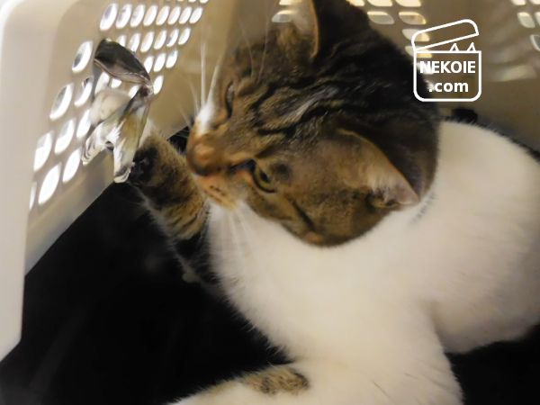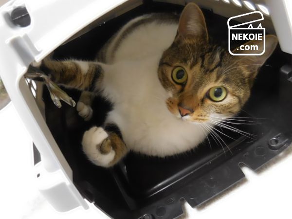 - 弟猫がキャリーケースの中に飛びこんで行く。