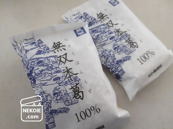 くず湯は、もうずっと無双本葛。粉末タイプのものもあるのですが、塊がごろごろ入っているタイプ(おそらくこちらが標準)を選んでいます。