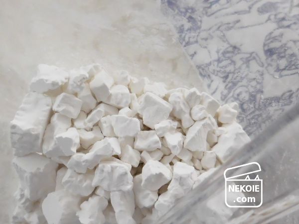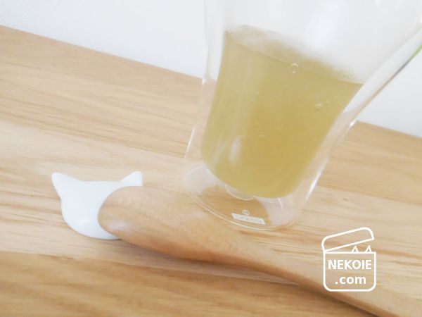 粉末やかけらを熱湯に入れるとひどくダマになってしまうのですが、それが冷めるとまた緩くなります。うっかり熱湯に投入してしまったときは、一度冷まし、そこからつくり直すのがいいかもしれません。