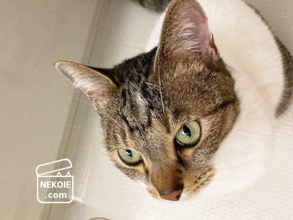 これは抱っこされたい弟猫と、お風呂上りなので許してほしい私との攻防中の写真でした。