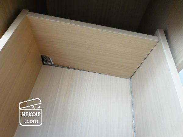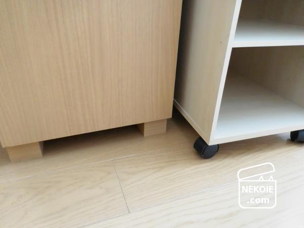 狭い場所なので変な角度の撮影になってしまいましたが、猫用品を詰めていた家具を一つ(写真に写っている内の一方=左側)手放すことにしました。度重なる猫の体当たりにより、引出しが壊れてしまったのです。
