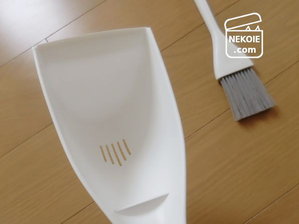 色違いはグレーの在庫を見かけました。わが家では今回隣接させる予定の猫用トイレ本体が白だったので、ほうきも白を。