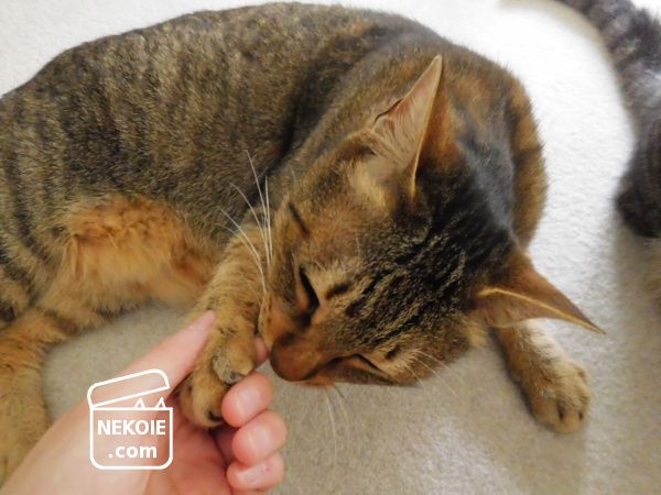 家事の後、私の手から食材のにおいがしたようで興味津々の兄猫。