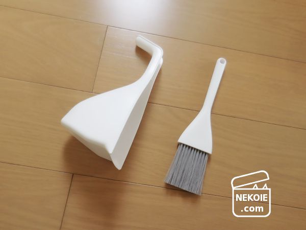 狭い範囲に複数の猫用トイレを並べておくなら掃除道具もワンセットあればよいのですが、扉や壁などの区切りがある場合はお手入れ道具もそれぞれの場所に用意したいなと。