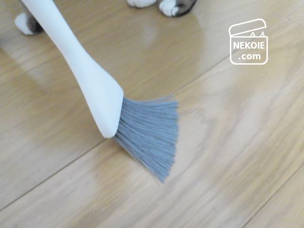 細身なので狭い場所にもほうきの先をすべりこませることは容易く、毛先もちょうどよい硬さ。