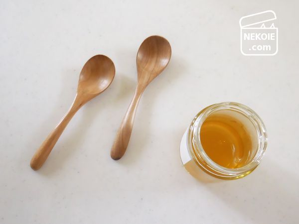 これ、とくべつ使い勝手がいいとか、はちみつの切れがいいとか、そういうことはありません。見た目どおりふつうのスプーンで、主にスープやおかゆに使っている数年来の愛用品。でも唯一避けようと思った金属製ではなく、苦労なく手に入り(家にあり)、お手入れの楽な形状であることが理想的でした。