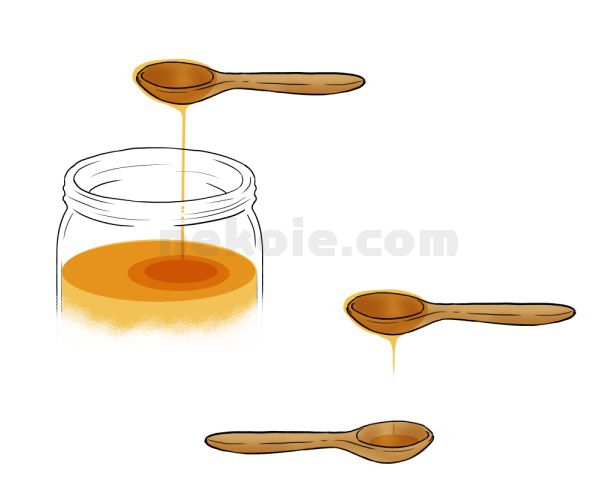 - 持ち上げたスプーンから糸を引くように垂れるはちみつが「細く」なるまで数秒間待つ。