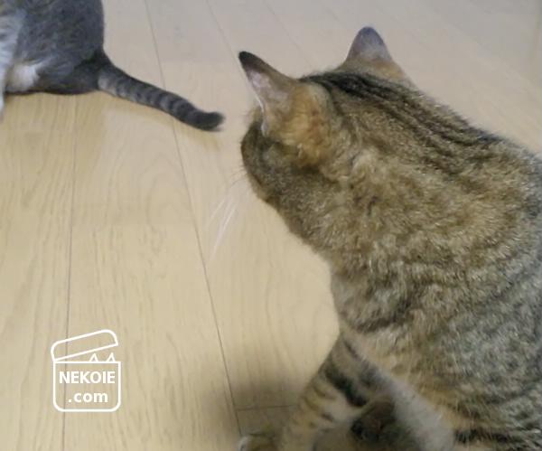 椅子の背にかけておいた服を床に落とし、その上で寝ていた猫たち…を、叱った後です。でも寒かったんだよね、ごめんごめん。
