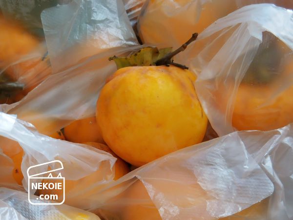 昨年までは材料となる渋柿を取り寄せていたのですが、今年はすべて地元産です。通販ではまとめ買いでないと送料も気がかりなので、直前まで迷っていた今年は少なめの「1.5kgで300円」はお手頃だなと決めました。