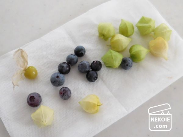 がくの色を見るとまだ青いのですが、つまんだ一つはおいしくいただけました。