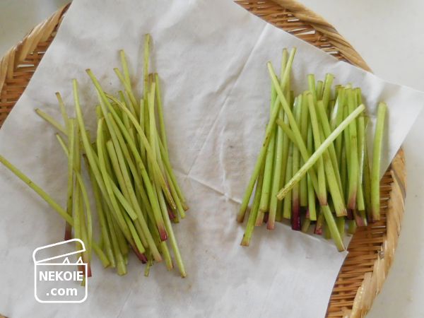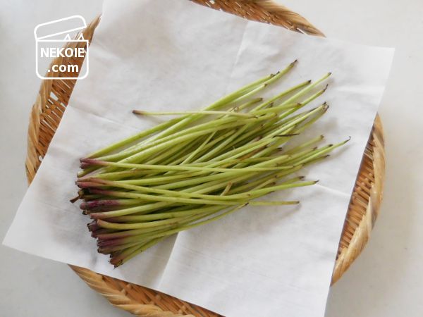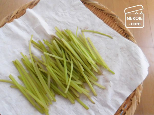 あとは水に浸した状態で冷蔵保存。毎日水を交換すれば数日もつ、というのはたけのこといっしょです。