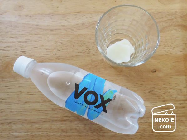 今回は冷蔵庫から出したばかりの炭酸水を使いましたが、それでも水分を注ぐと固形化したカルピスは早々に溶けていきました。でも溶けるのが遅く、なかなか味を感じられないよりはいいかなと。