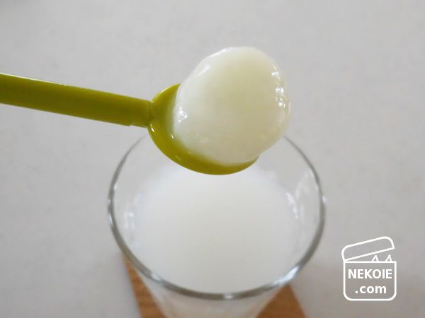 抜いた冷凍カルピス原液は、手の熱でもあっという間に溶けてしまいそうだったので、すぐにコップへ。