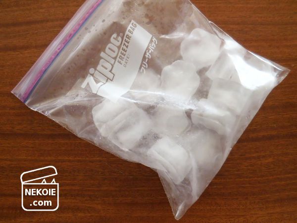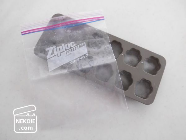 やわらかいシリコン型だと水を入れたときに安定させるのが難しいので、基本はトレイの上にのせて移動。慣れるまでは少し手間に感じたけれど、もともとお菓子づくりにも使えるものだし、新たな容器を増やさずにすんだのが私にとってはメリットでした。