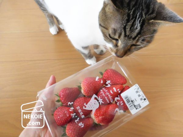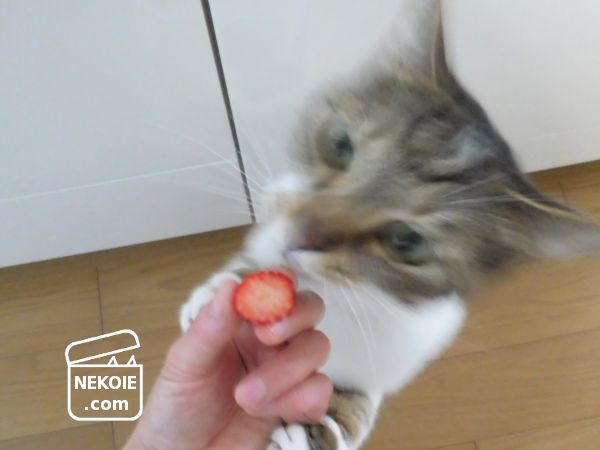一部の猫が、生のいちごを大好きで。