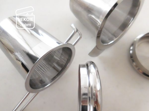 デザインは凝っていないほうがお手入れは簡単になり、私にはうれしいメリット。ただ新茶こしのほうは金属の端(カットされた部分)の処理が心もとなく、場所によってはスパッと手を切ってしまいそうな鋭さが残っていました。洗うときは慎重さが必要になりそうです。