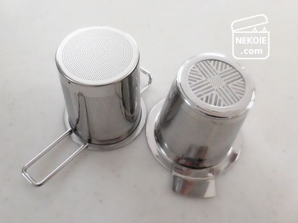そんなわけで、新茶こしと、愛用茶こし。ぱっと見のつくりにも違いはあるのですが、細かい部分を見るほどに新茶こしのほうがシンプルでした。