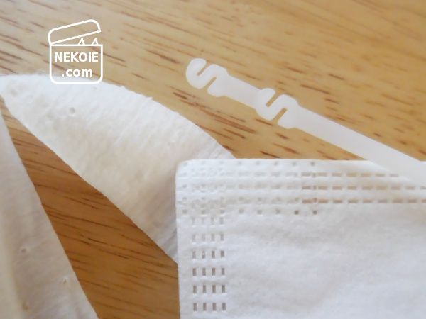今のところ他の問題は感じません。細いぶん強度はどうだろうと心配したものの、よほどの衝撃がなければ壊れたりはずれたりすることはなさそう。不織布マスクに似たプリーツ仕様の形状であれば、布マスクへの装着もできました。