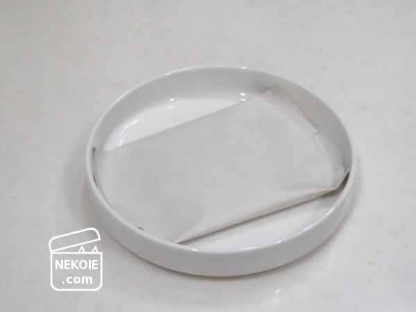もともと小袋自体は不織布で、レンチンを終えた後の皿や生地はしっとり湿っていたんです。水滴がつくほどではなかったものの、その湿気を紙が吸ってくれるというしくみには納得でした。