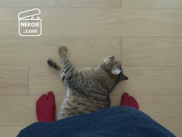 猫の上で前屈すると、指の先がいつもよりちょっと床に近づく。