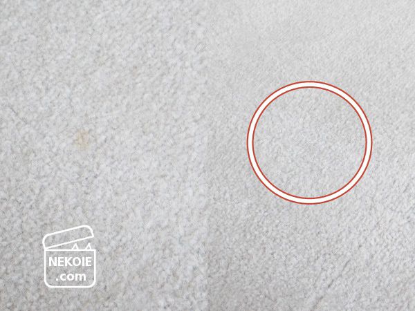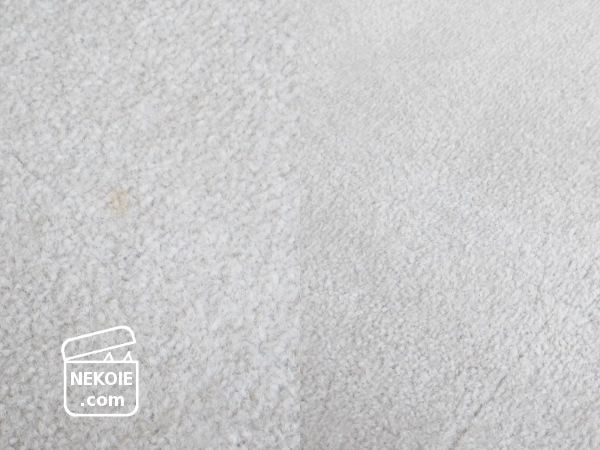 実は(のせてしまって申し訳ないのですが)汚れは猫の嘔吐後のもので、表面は掃除したものの、しみは残ってしまったんです。洗えるカーペットタイルなので、冬場のことで「あったかくなったら洗おう」と思ったまま一ヶ月くらい放置。その後リンサーを買ったのでいそいそと掃除してみた結果、前出の結果になりました。